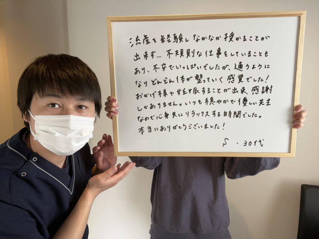 流産を経験し、なかなか授かることが出来ず、、、不規則な仕事をしていることもあり、不安でいっぱいでしたが、通うようになりどんどん体が整っていく感覚でした!おかげ様で妊娠することが出来、感謝しかありません。いつも穏やかで優しい先生なので心身ともにリラックスする時間でした。本当にありがとうございました!