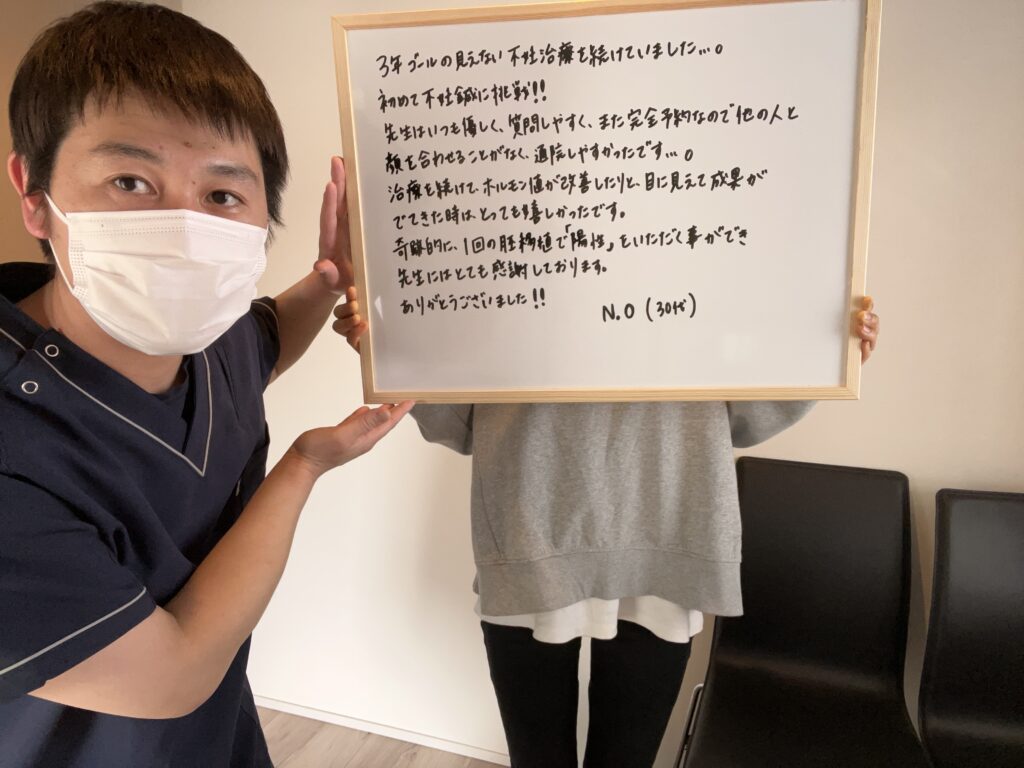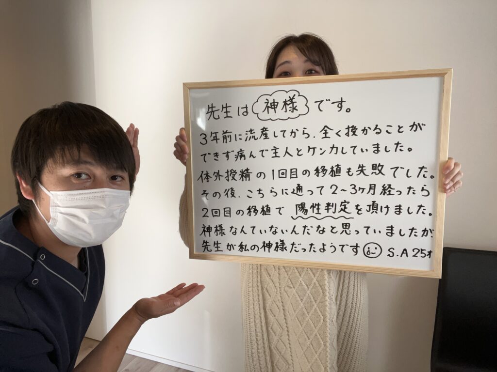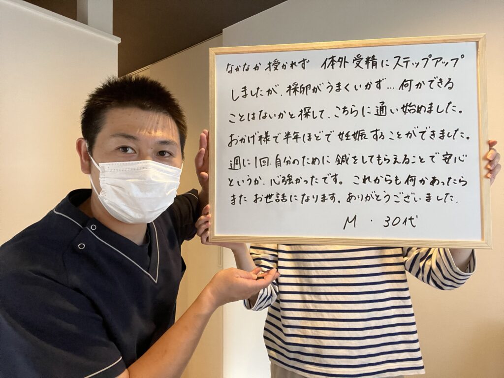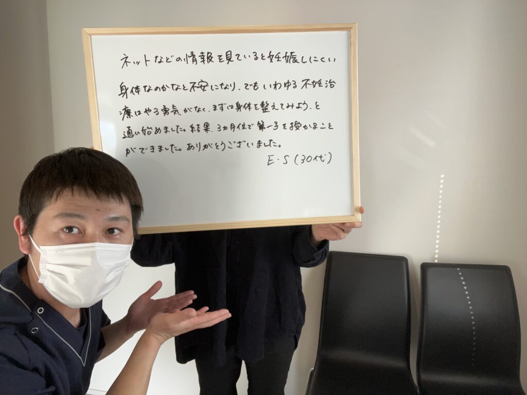 通ってから実際に卵胞の発育が今までよりも明らかに良く、そのまま妊娠に至ることができました。赤ちゃんの成長も順調で現在安定期に入りました。S.C様 40歳 女性 流産を繰り返していたこと、年齢のこともあり、クリニック通院以
